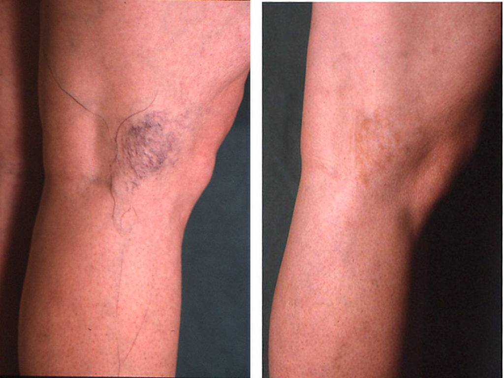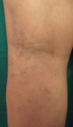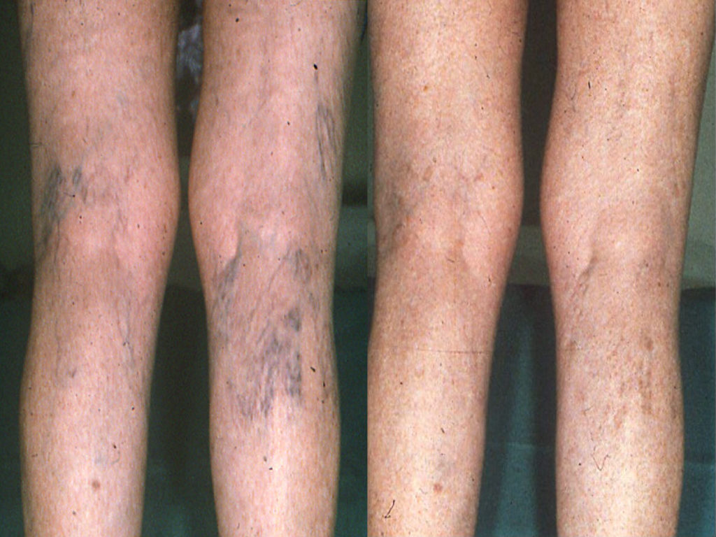 Terapia rapida di teleangectasie estetiche. Aspetto dell’arto all’inizio e dopo tre sedute fatte lo stesso giorno: